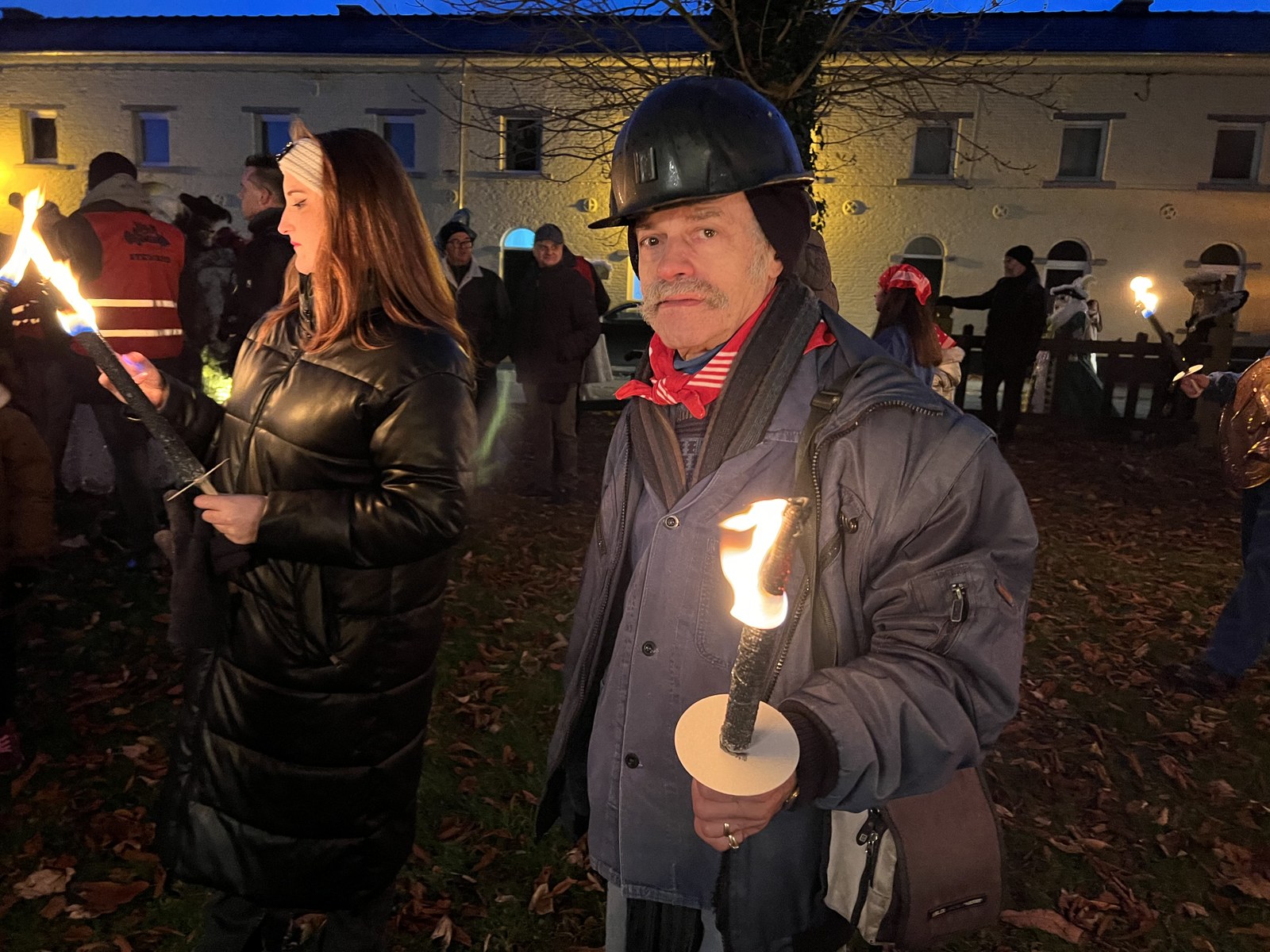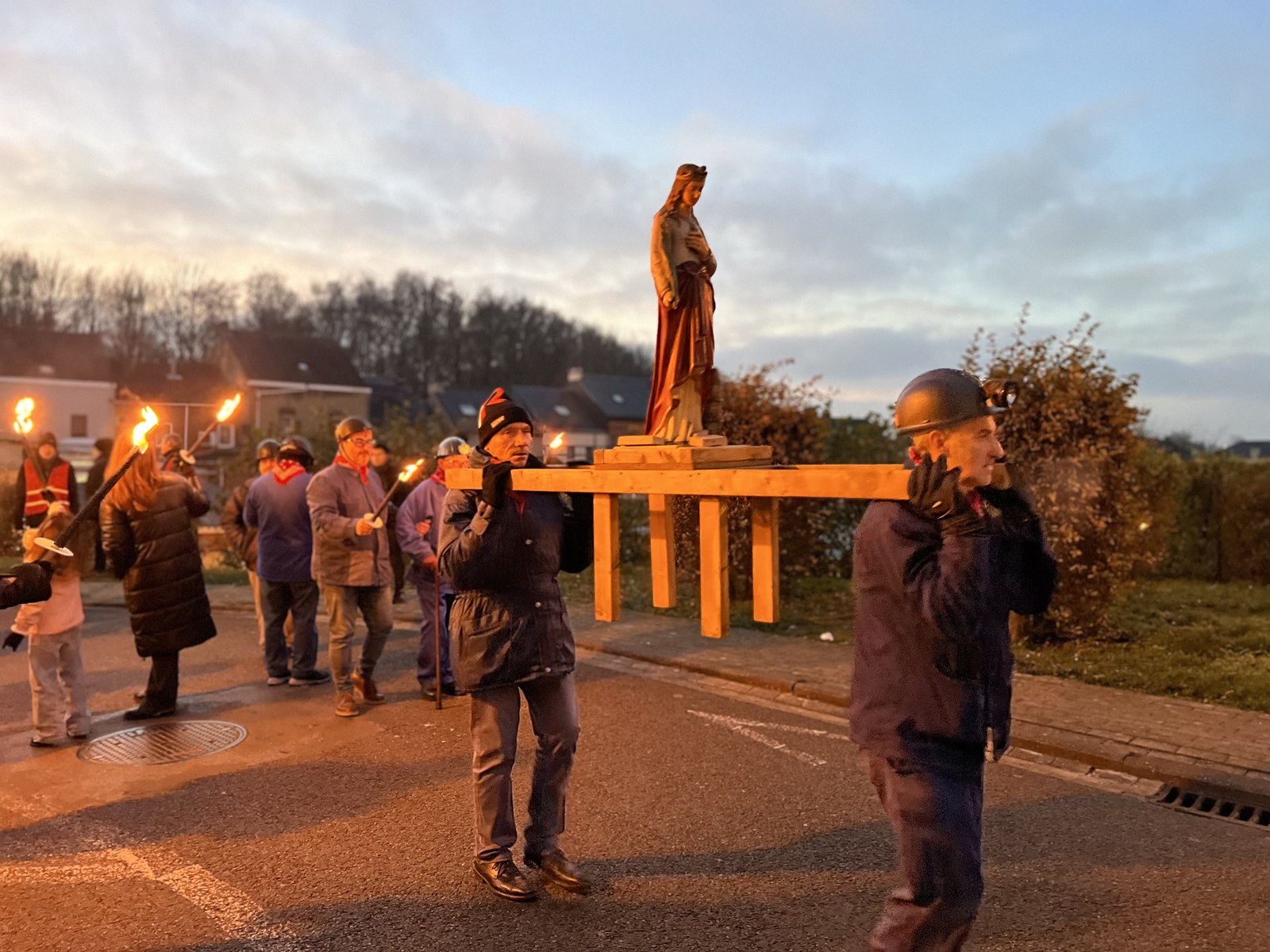 Marche aux flambeaux dans les rues de la cité minière du Bois-du-Luc avec la participation des associations d’anciens mineurs du Centre du Bois-du-Luc et d’Havré, des Regards Vénitiens, du Quadrille 1900 d’Harmignies, de l’école de tambours d’Houdeng, de l'asbl Symbiose et du géant Tchaupine.