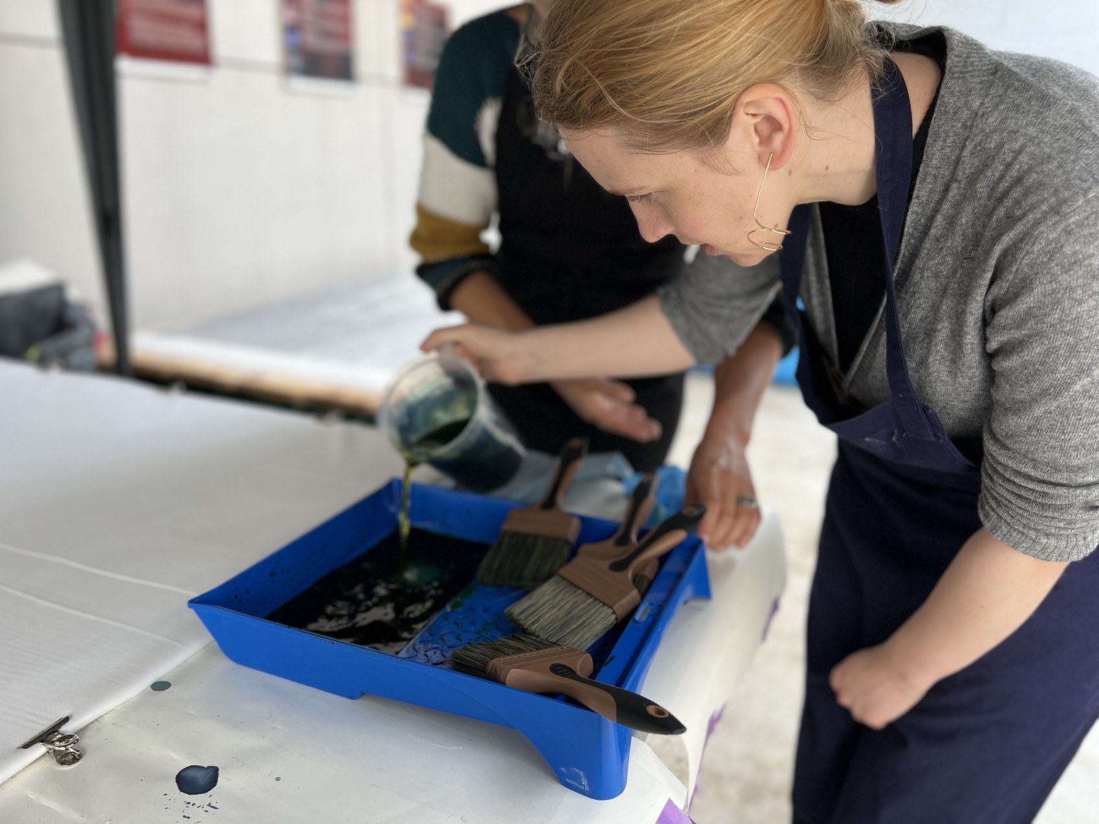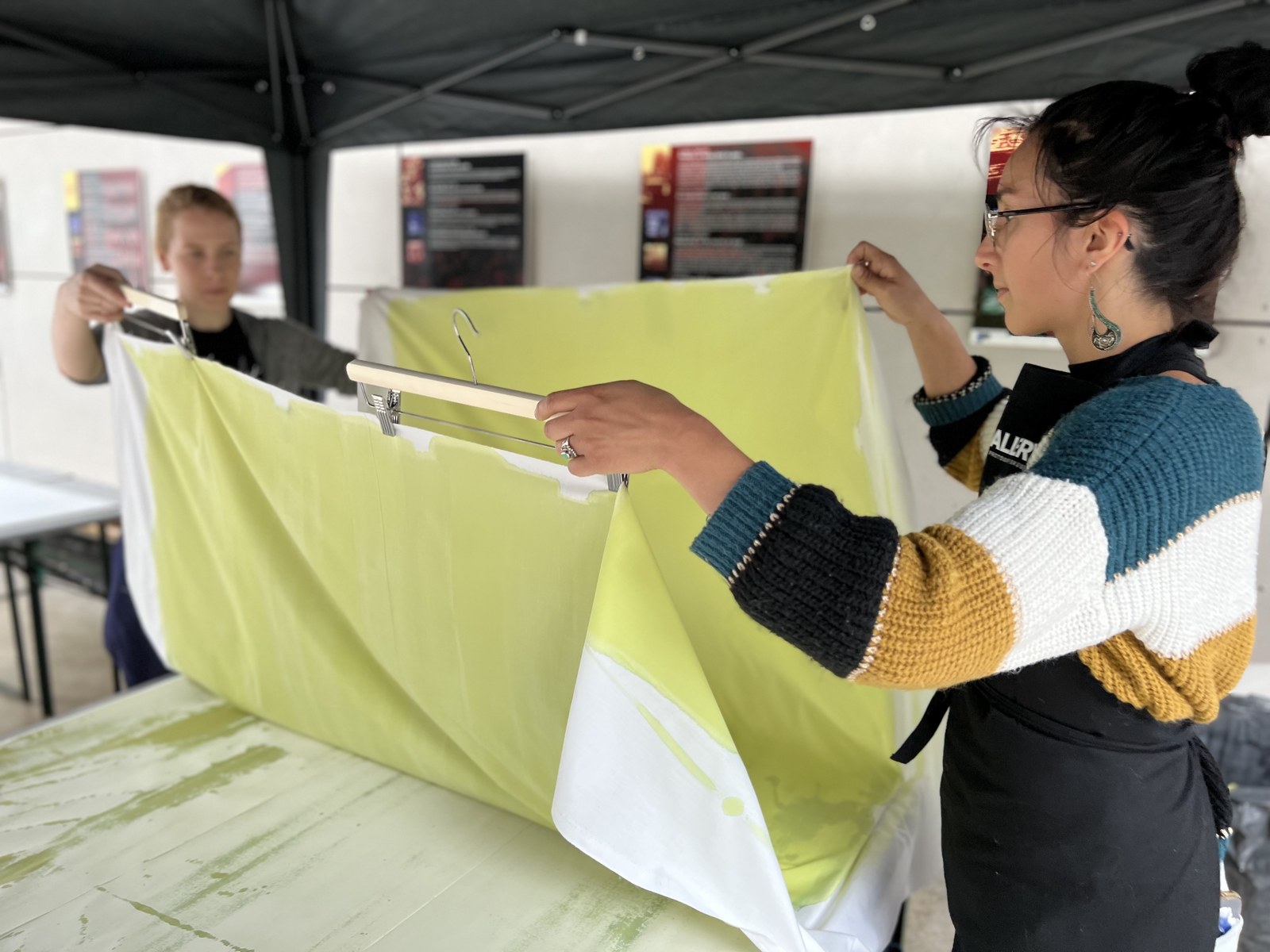 Le dimanche 6 août entre 14h00 et 18h00, Dorothée Wycart et Olivier Guyaux proposent une expérimentation plastique entre symbolisme et alchimie photographique : Triptyque Ishtar, une fresque en cyanotype et carbone de 50 m².