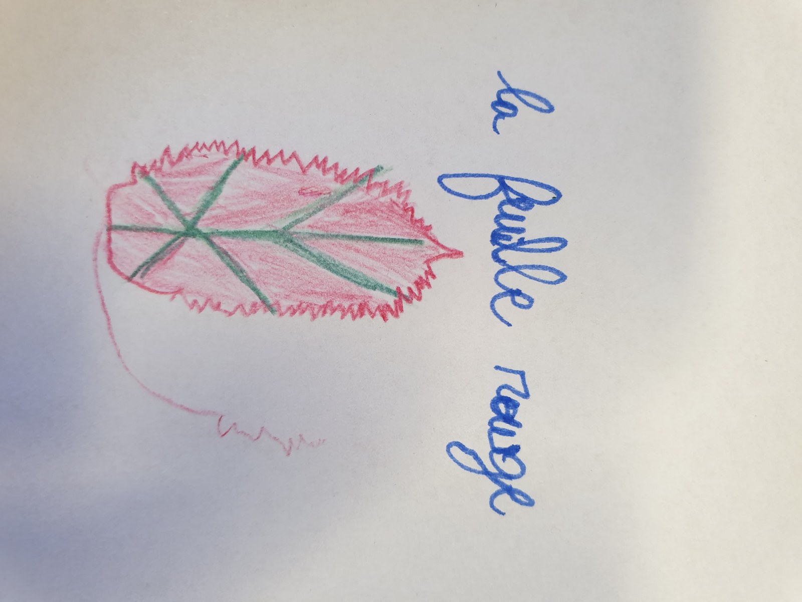 Moi, j’ai une plume, des feuilles vertes et d’autres brunes, ramassées au sol.